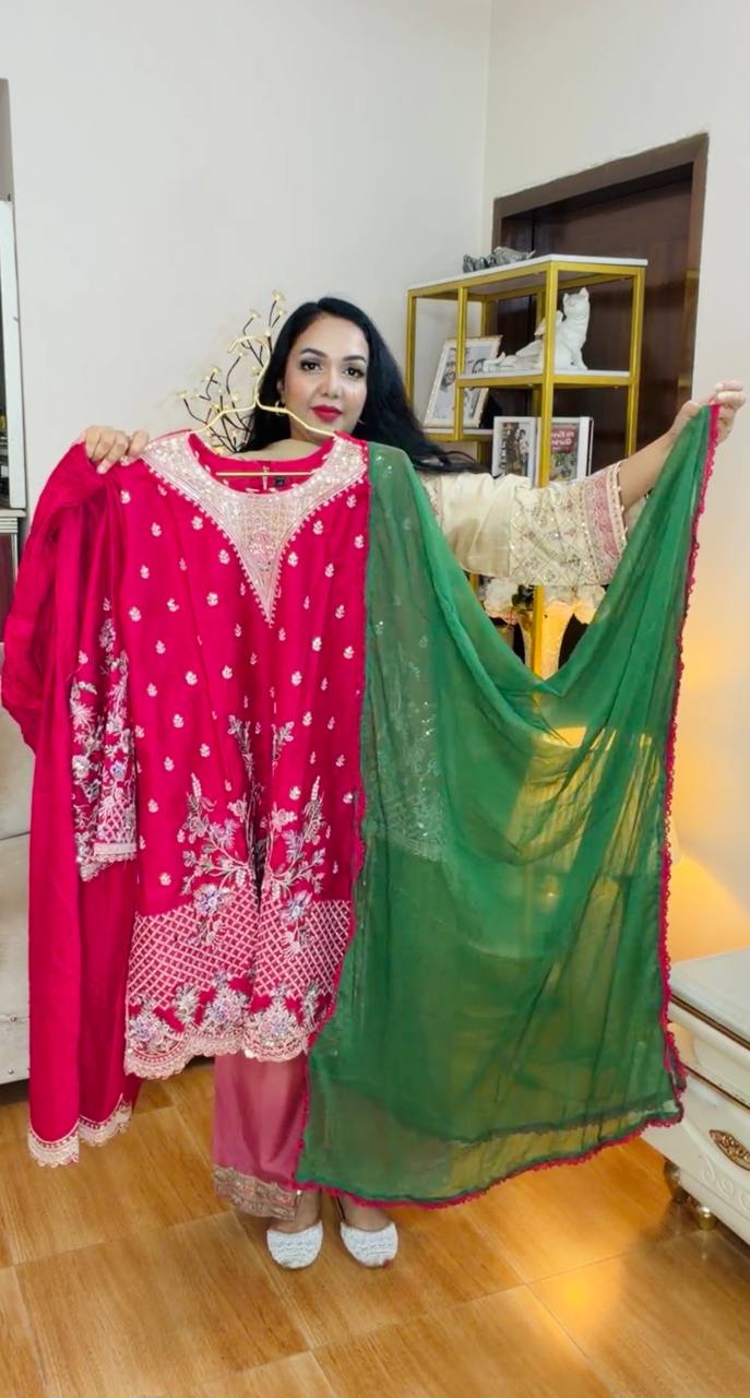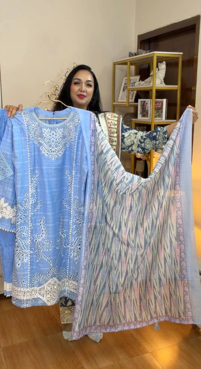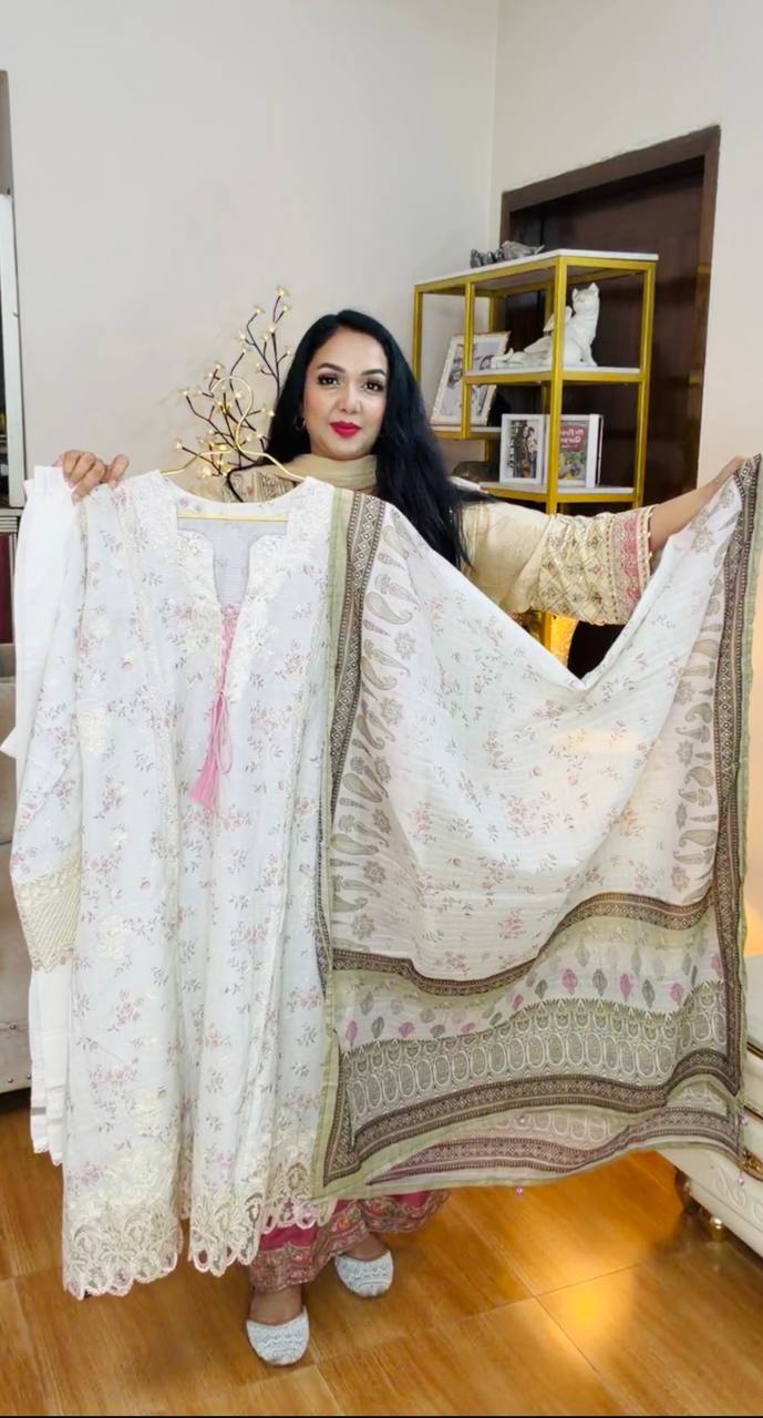 - Dupatta: Digital Printed Chiffon Embroidered Cutwork.